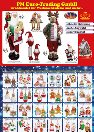 Wir bieten im B2B-Bereich eine große Auswahl an Produkten an. Unser Fokus liegt auf dem Reisebereich, aber auch eine sehr große Auswahl außergewöhnlich schöner Weihnachtsdeko haben wir im Sortiment. Von nostalgischen Weihnachtsmännern und Wichteln über die beliebten schneienden Laternen bis hin zu Weihnachtsbäumen und ganz besonders großen Weihnachtsfiguren finden Sie in unserem Sortiment eine große Auswahl unterschiedlicher Deko-Artikel für die Weihnachtszeit.