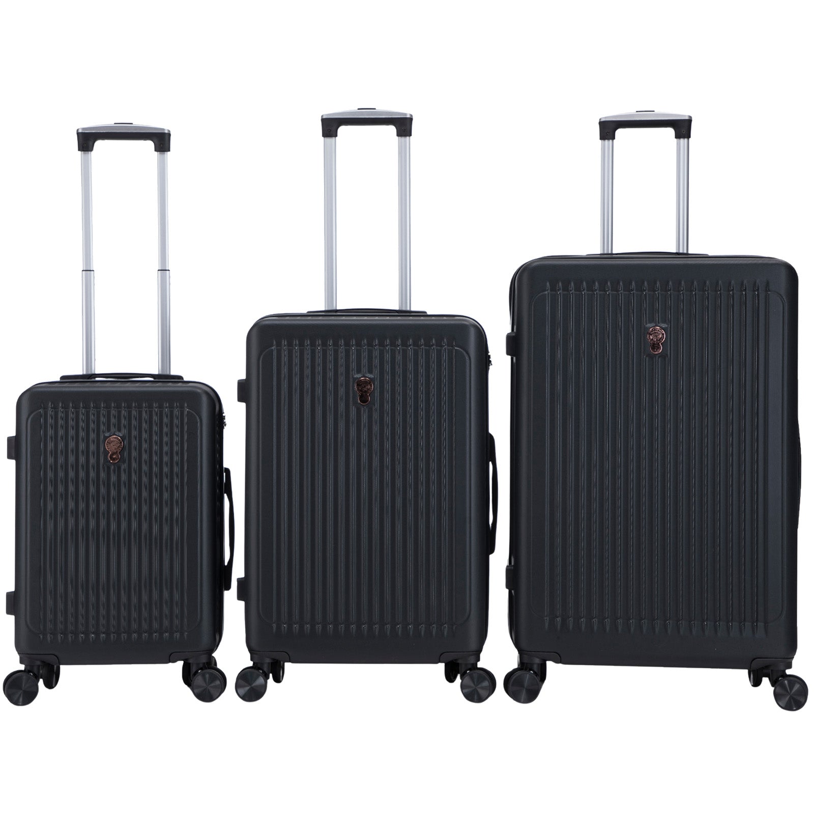 Ein robustes 3-teiliges ABS-Kofferset mit unempfindlicher Strukturoberfläche im klassischen Design. Ausgestattet mit 4 Doppelrädern, Zahlenschloss und einem geteilten Innenleben begleiten diese Koffer zuverlässig und komfortabel jede Reise.