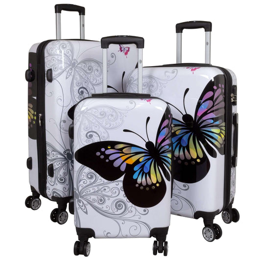 Juego de maletas policarbonato motivo 3 piezas Mariposa blanco