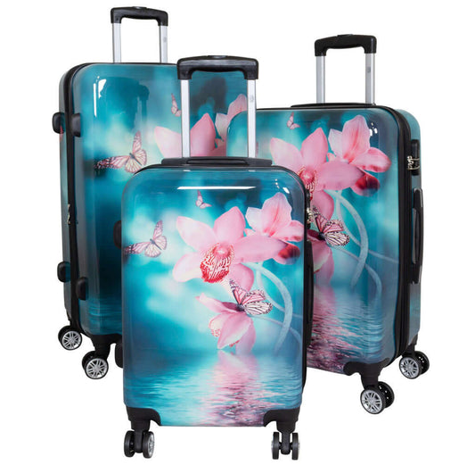 Juego de maletas policarbonato motivo 3 piezas orquídea