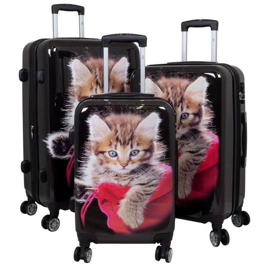 Juego de maletas con motivos de policarbonato 3 piezas gato negro