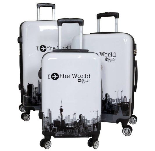 Juego de maletas motivos policarbonato 3 piezas Fly the world blanco