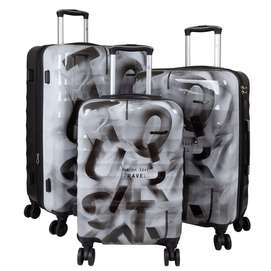 Juego de maletas motivos policarbonato 3 piezas Verona gris-negro