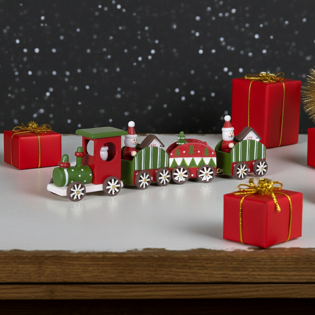 Un tren navideño diseñado con mucho cariño y muy detallado, un verdadero atractivo para cualquier decoración navideña y de Adviento.