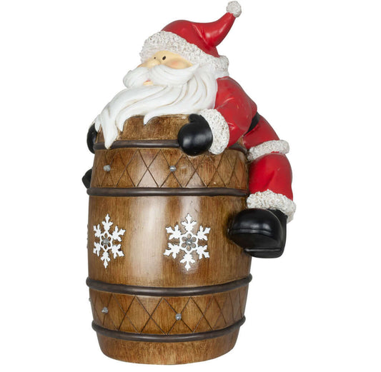 Decoración navideña LED Papá Noel en barril 39cm