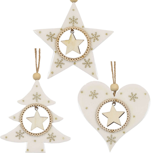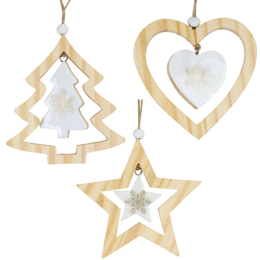 Puinen puukoristeet, 3 mallia, 11cm