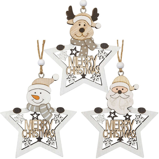 Joulukuusenkoriste puuta, 3 mallia, 9 cm